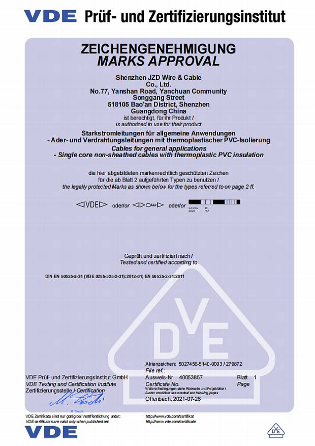 德國(guó)VDE電線電纜資質(zhì)認(rèn)證20210721